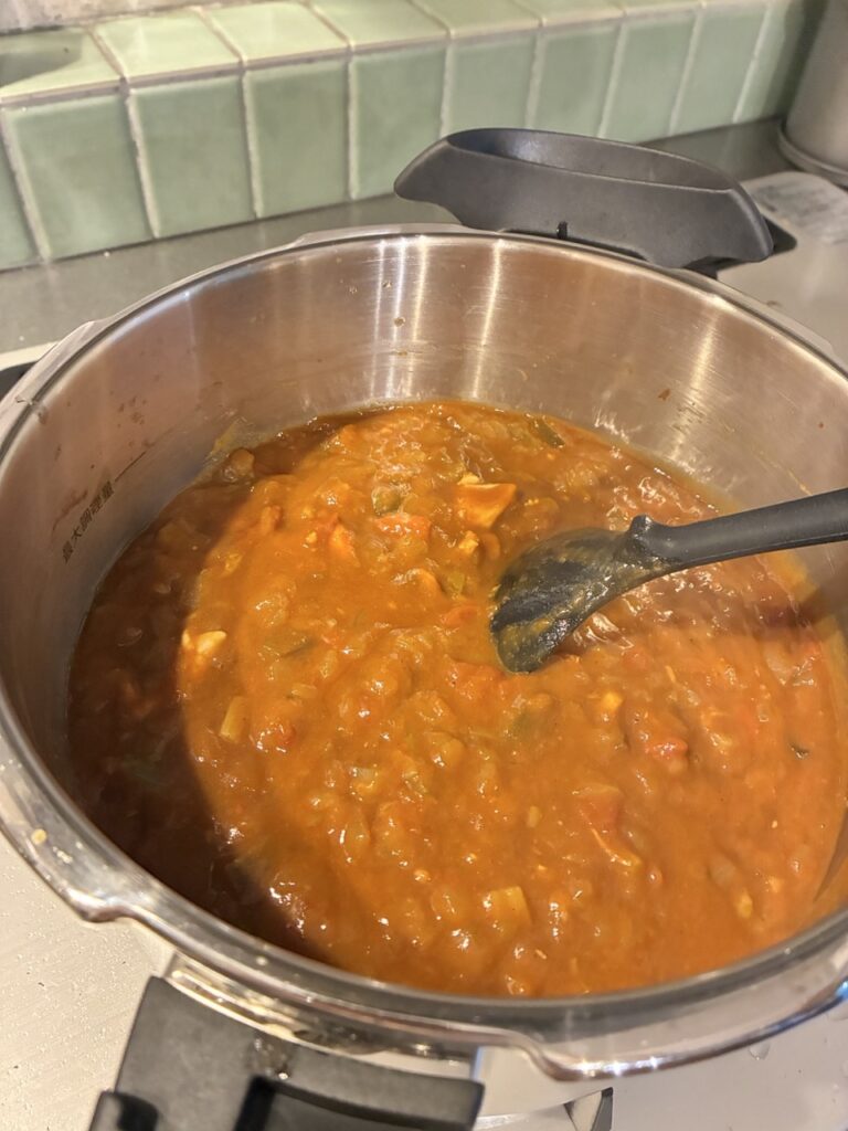 肉を豚肉のブロックにしたり、ズッキーニやマッシュルームを入れたりして別のカレーも作りたいなと思っています。今度からうちで作るカレーは圧力鍋の無水カレーにしようと思います。