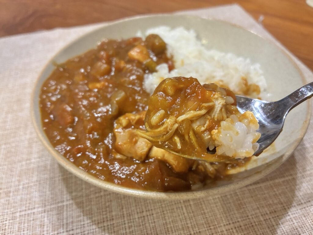 今まで作っていたカレーには1リットル近い水を入れていたのに、それを1滴も入れないなんて無理じゃない!?と思っていましたが、全く焦げ付くこともなく美味しいカレーが完成しました。